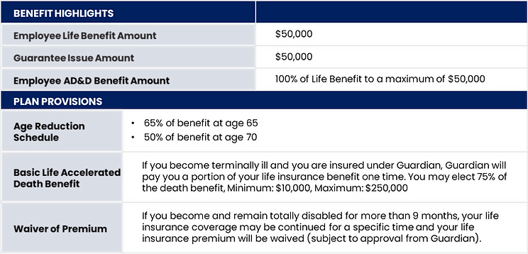 Please refer to the SBC document for additional details about your Life AD&D plan benefits.